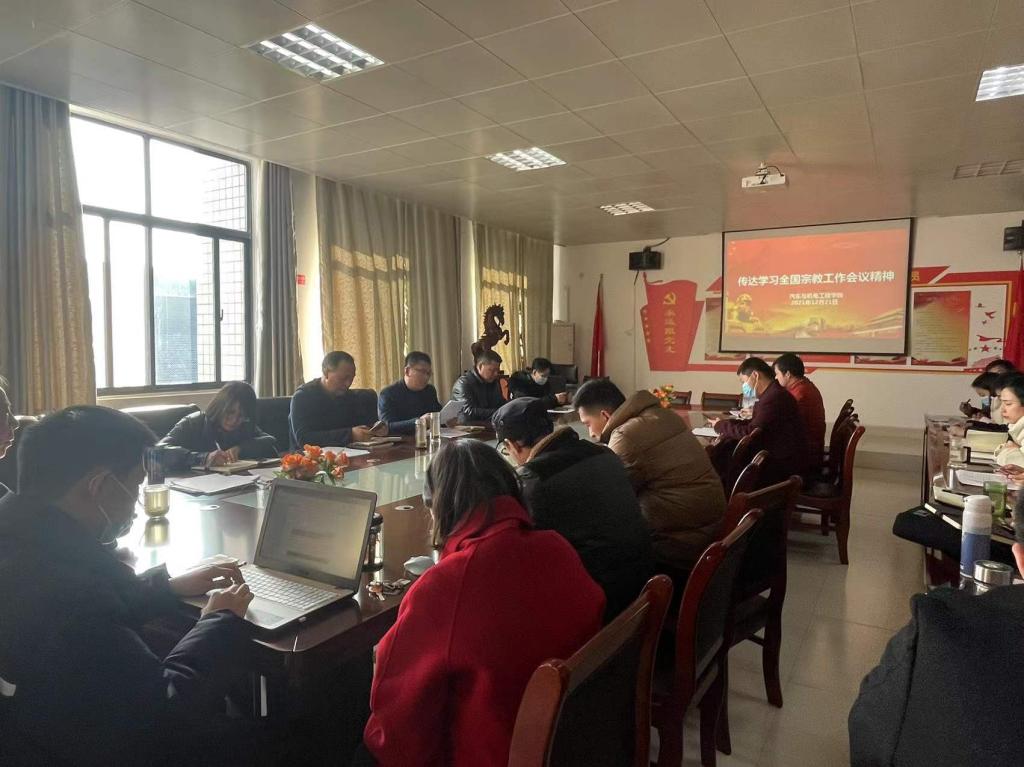 12月21日下午,开云足球集中学习全国宗教工作会议精神等相关文件。院长吕争、党总支副书记张礼涛、副院长曾勇、王平俊及全体教职工参加,党总支书记代翔主持活动。