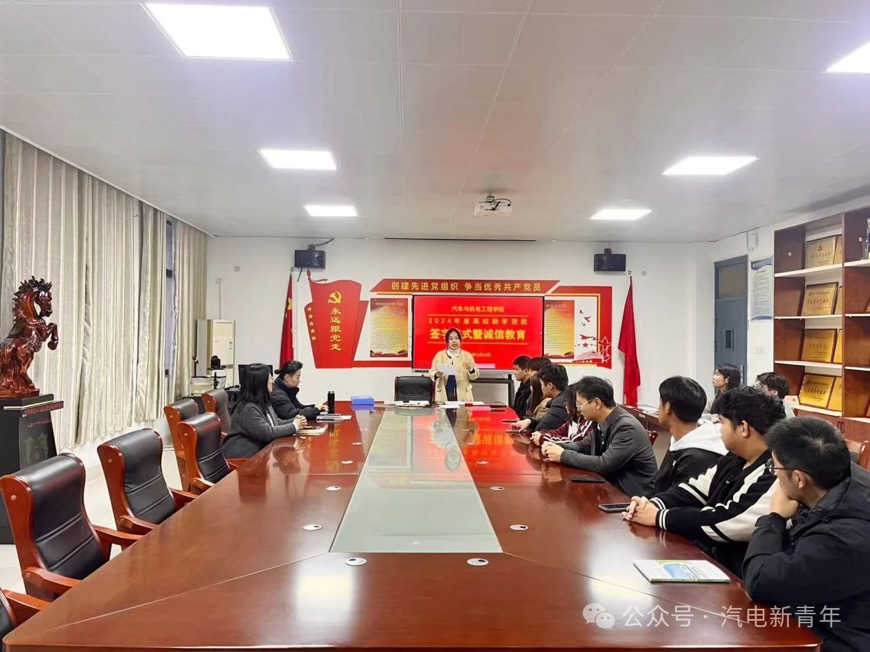 为深入落实国家资助政策,规范高校贷款合同签订流程,做好贷款合同签订工作,进一步增强高校贷款学生的诚信意识和自立自强意识,我院于2024年11月18日下午,在3002会议室举办了2024年高校助学贷款合同签订仪式暨诚信教育主题活动。参加此次活动的有学院党总支书记朱燕鸣、副院长曾勇、资助专干吕莉、辅导员及贷款学生。