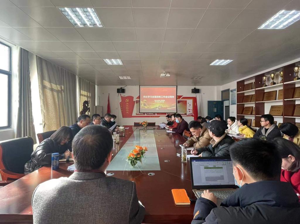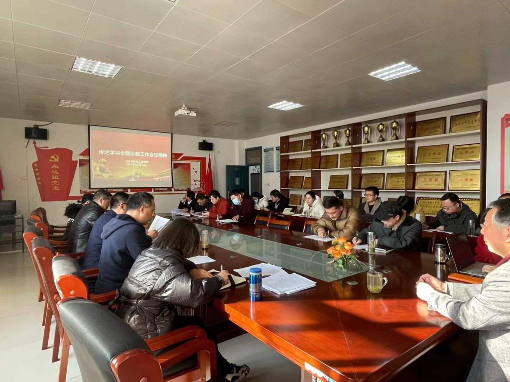 12月21日下午,开云足球集中学习全国宗教工作会议精神等相关文件。院长吕争、党总支副书记张礼涛、副院长曾勇、王平俊及全体教职工参加,党总支书记代翔主持活动。