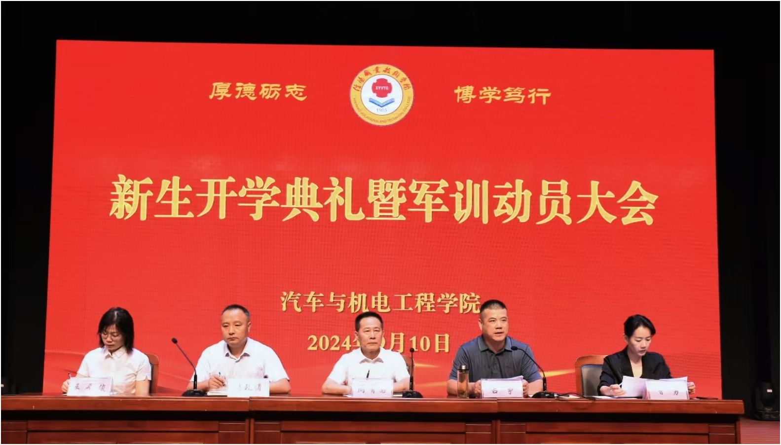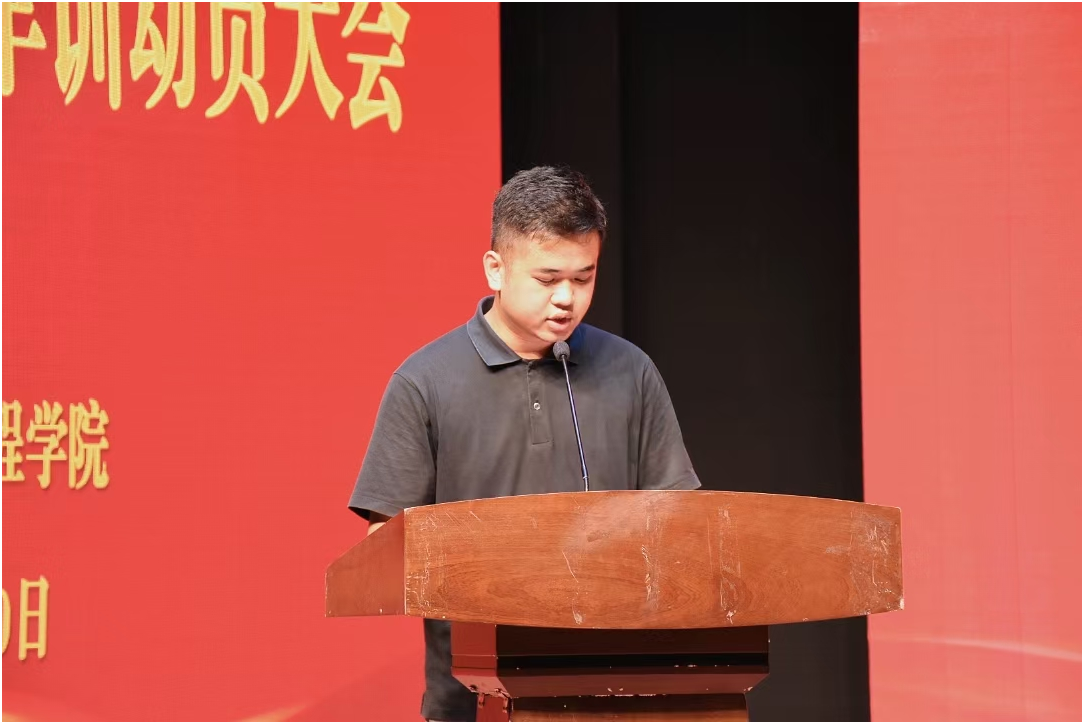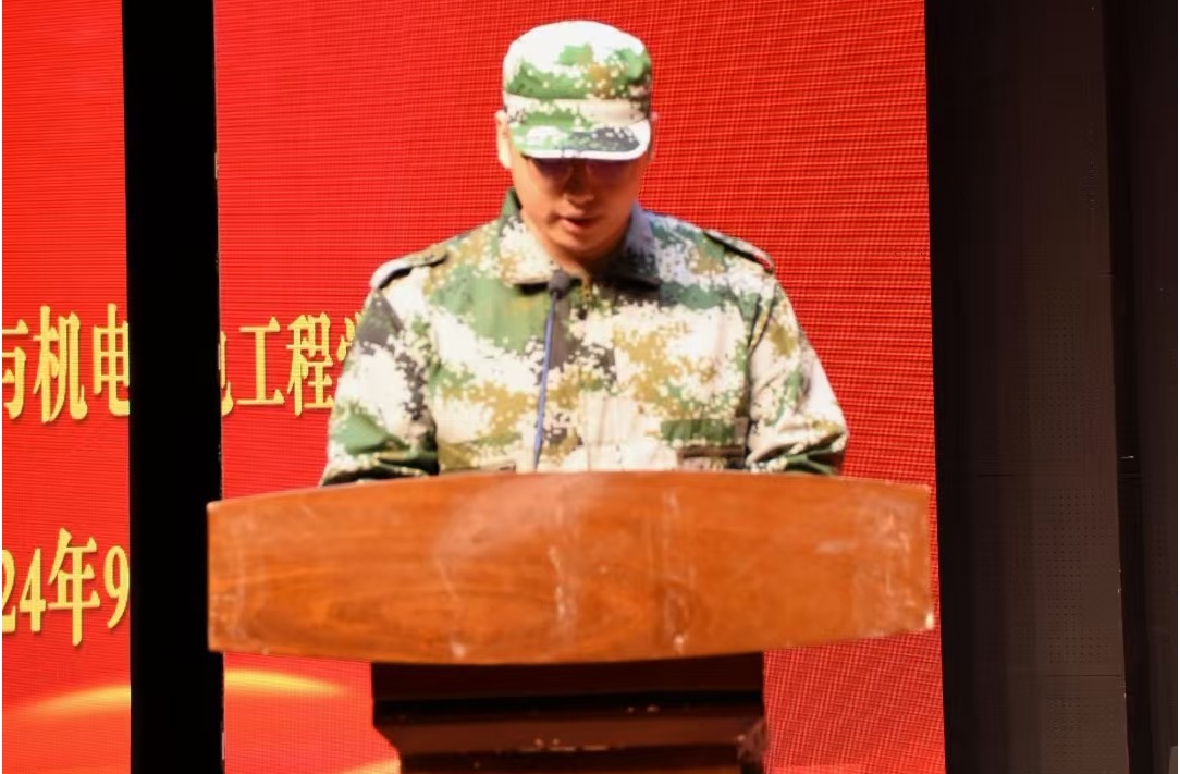 新生代表24级新能源汽车技术6班赵宇航呼吁新同学们树立远大目标,团结友爱,尊师肯学,严于律己,用汗水锻造明日的辉煌!